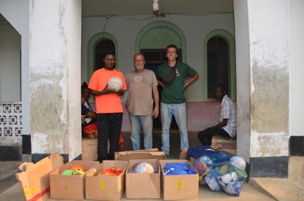 At the Kimpangu Catholic mission. Official handing over of sports gears (footballs,
